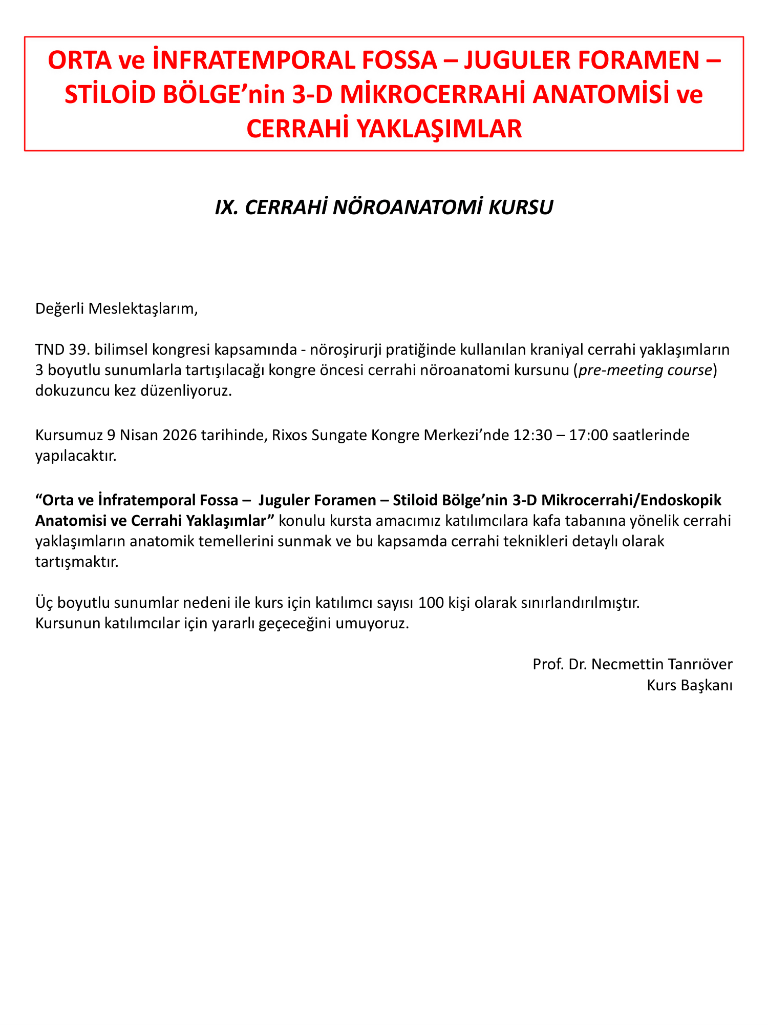 Cerrahi Nöroanatomi Kursu